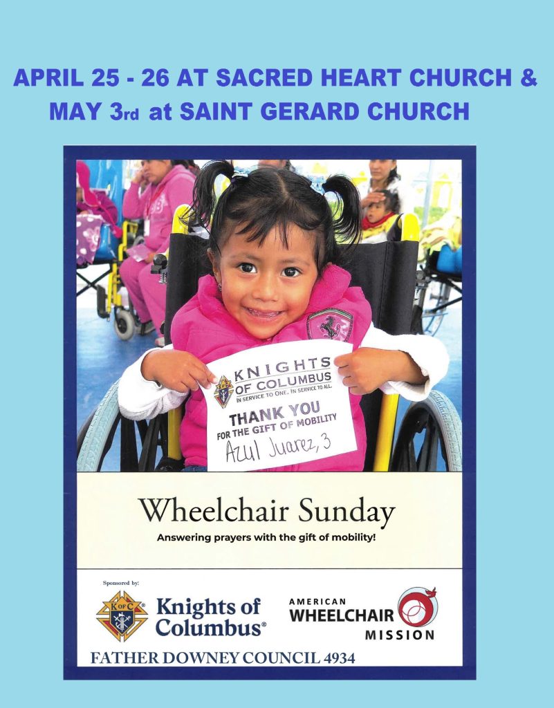KofC #4934 Wheelchair Collection April 18, 2026Upcoming EventsElla We need your help to answering Prayers with the gift of Mobility! Check out the information below on how you can help!
